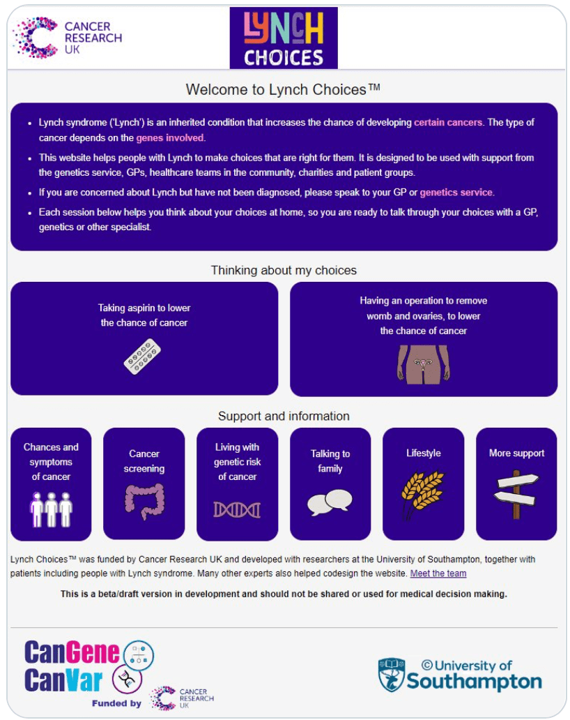 Cancer Research UK has funded codesign of Lynch Choices https://canchoose.org.uk to support decisions.