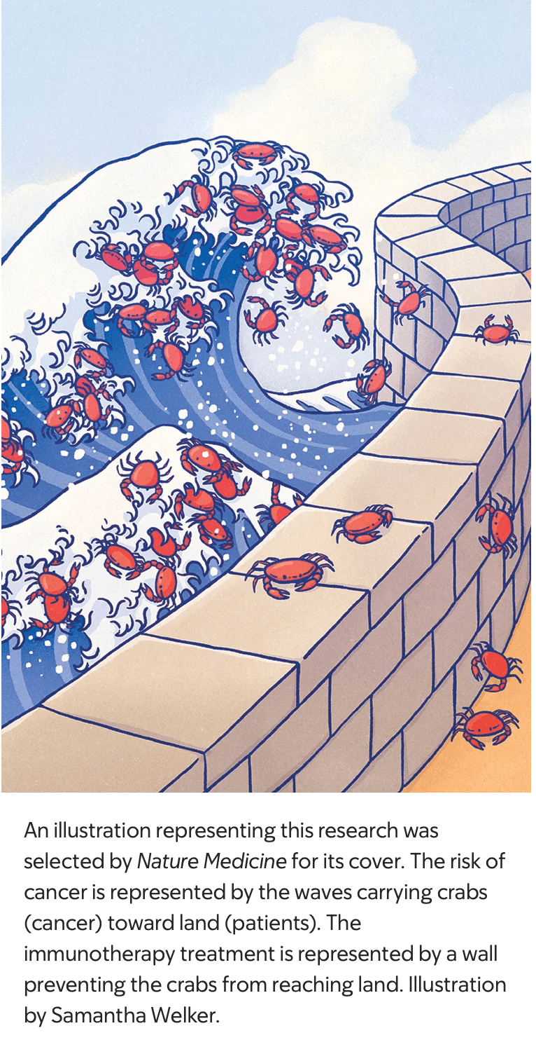 These MMRd cancers have a lot of mutations, which makes them visible to the immune system. Therefore, drugs that enlist the immune system to fight cancer cells are particularly effective. Past research from Dr. Diaz and others found that tumors with MMRd are more likely to respond to checkpoint inhibitors. Thanks to that discovery, these drugs are now widely used to treat patients whose tumors have MMRd, including those whose cancers are due to Lynch syndrome.