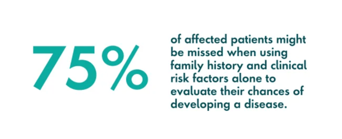 No guidelines exist for proactive genetic testing to understand overall health risks in otherwise healthy individuals with no family history of disease, so comprehensive risk assessments that include genetic testing aren’t yet standard practice for most healthcare practitioners.