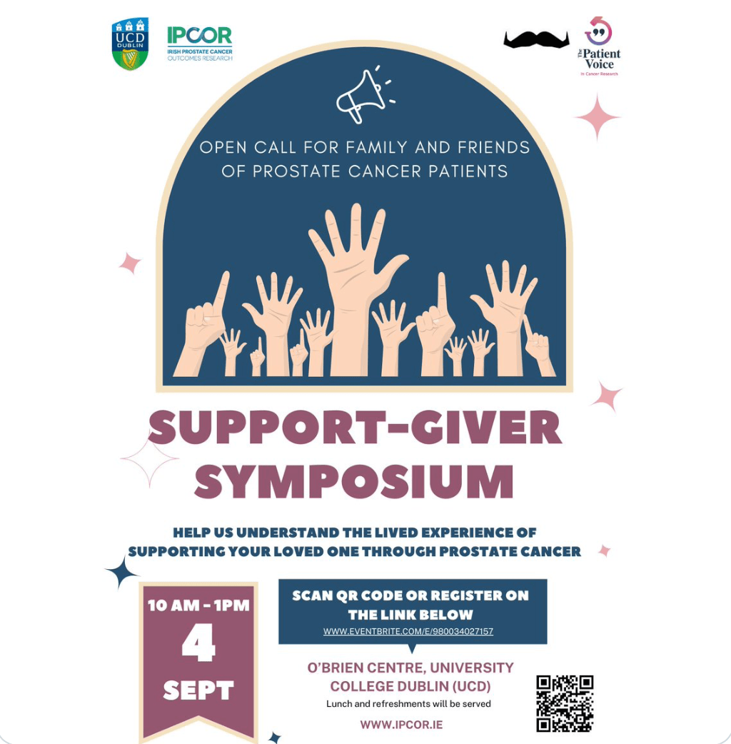 Know anyone who has suffered through prostate cancer? We’re looking for the stories and voices of their support-givers. Share and register now at: https://eventbrite.ie/e/prostate-cancer-support-giver-symposium-tickets-980034027157