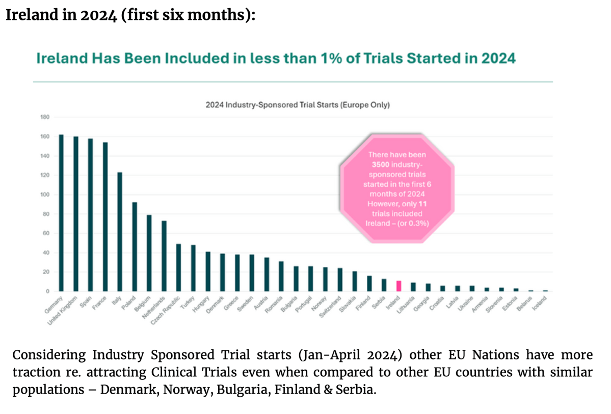 • Clear calls to action that the Government can take to ameliorate the effect of Ireland’s interpretation of GDPR/HRR relating to clinical trials (& health research)