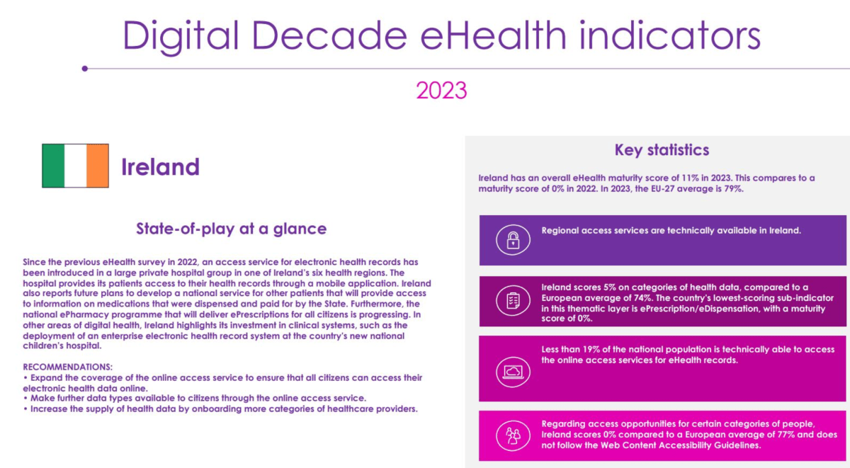 This report presents the latest results of the assessment on EU27 countries’ (plus Iceland and Norway) state-of-play towards delivering the Digital Decade’s e-Health target of 100% EU citizens having access to electronic health records by 2030.
