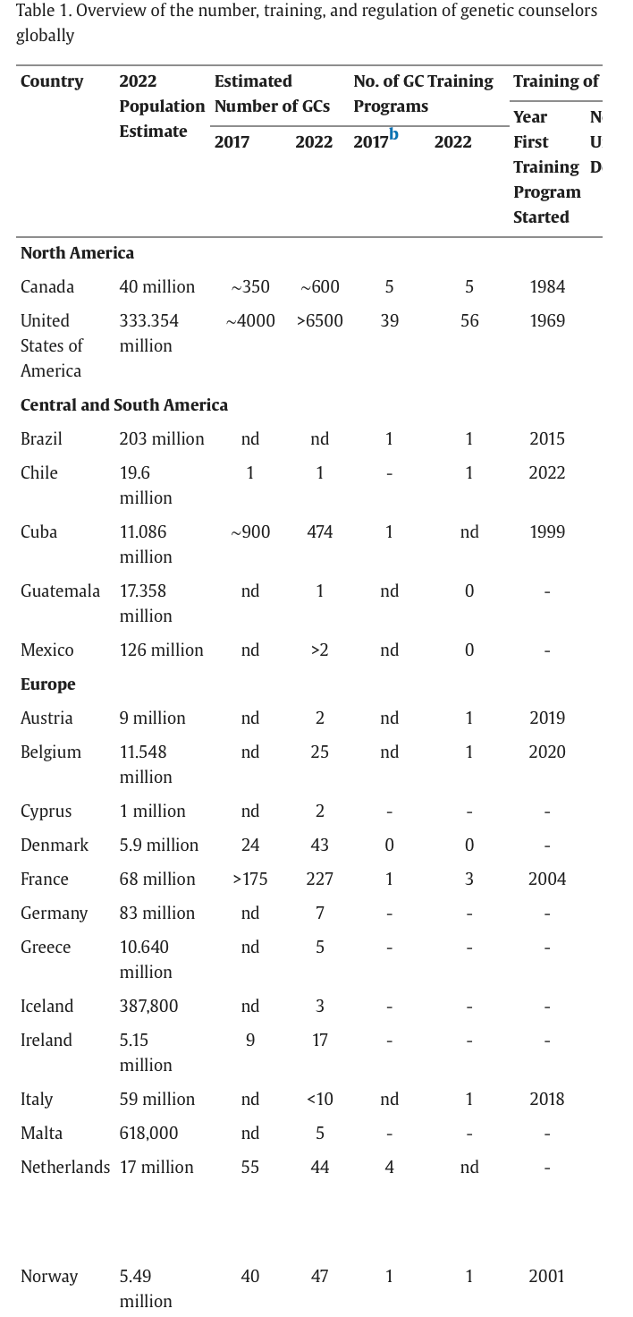 The global status of genetic counsellors in 2023: What has changed in the past 5 years? https://www.sciencedirect.com/science/article/pii/S2949774424010331