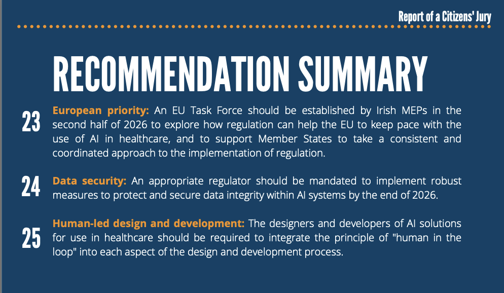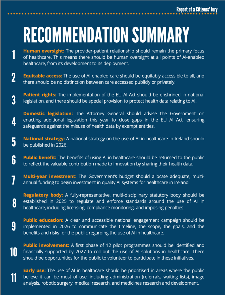 Read the #IPPOSI Citizens’ Jury report on Artificial Intelligence (AI) in Healthcare- 25 recommendations calling for regulation, public interest champions, ongoing engagement, and more.